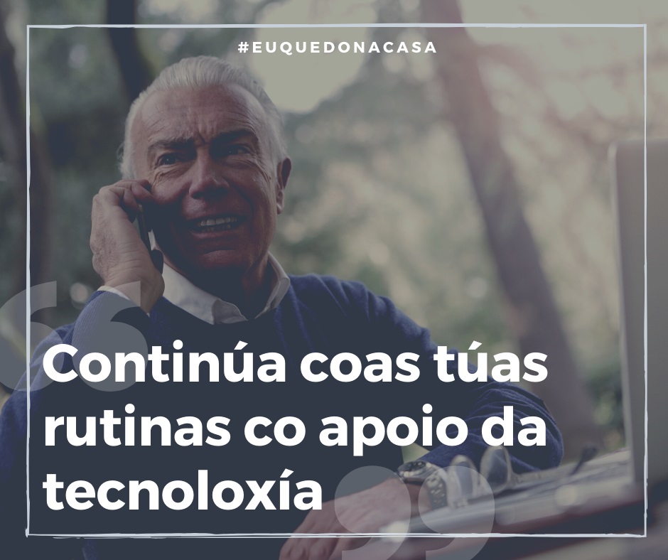 Hoxe queremos dirixirnos aos máis de 850.000 galegos e galegas que tedes máis de 60 anos e especialmente aos que vivides en fogares unipersoais. Queremos dicirvos que continuedes coas vosas rutinas diarias desde as vosas casas e vos apoiedes na tecnoloxía para poder mellorar a vosa calidade de vida e estar máis activos, especialmente nestes días de alerta sanitaria.