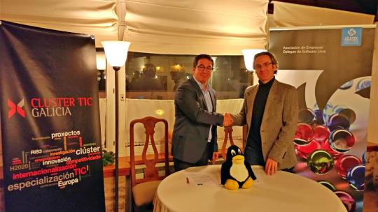 A Asociación de Empresas Galegas de Software Libre (AGASOL) e o Cluster TIC Galicia asinaron hoxe un convenio de colaboración para, entre outras cousas, facer fronte común a prol “da defensa e a mellora da competitividade do hipersector das tecnoloxías da información”. O acordo, de duración indefinida, incluirá actividades conxuntas e, de cara a todos os ámbitos sociais (cidadanía, institucións, empesariado, medios de comunicación), unha única faciana institucional. Esta voz unificada será asumida polo Cluster TIC.